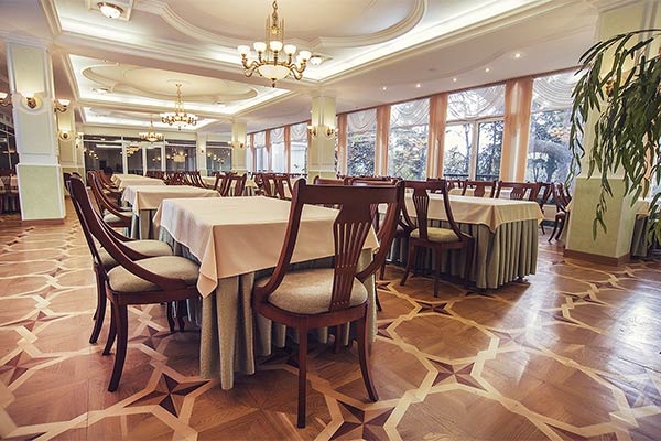 На первом этаже находятся: медицинский центр и конференц-зал, на втором - обеденный зал, где проходит трехразовое питание (обслуживание официантами). С 1 по 6 этаж располагается номерной фонд для проживания. Все номера кондиционированы и обладают всеми необходимыми характеристиками для комфортного размещения.